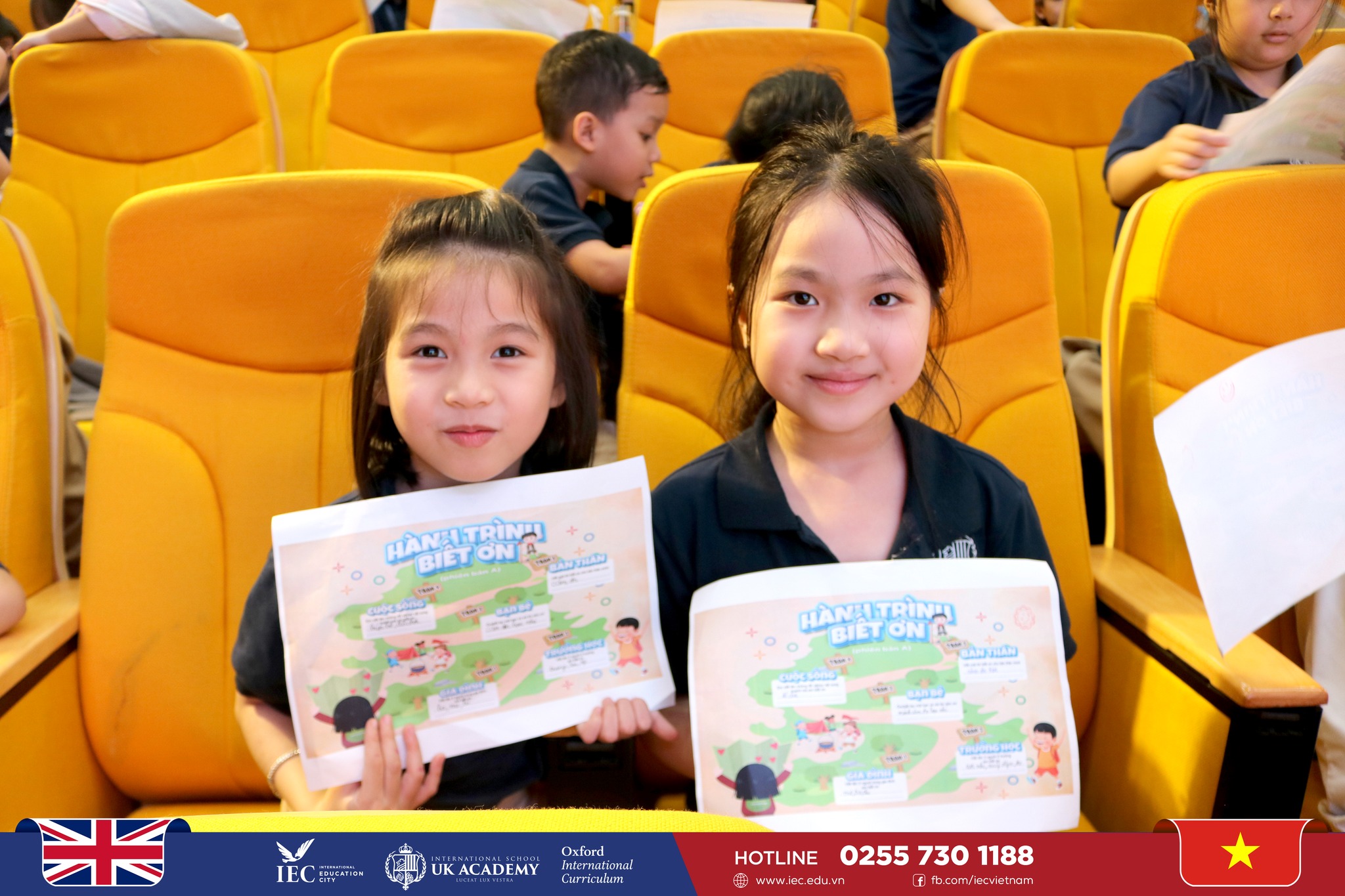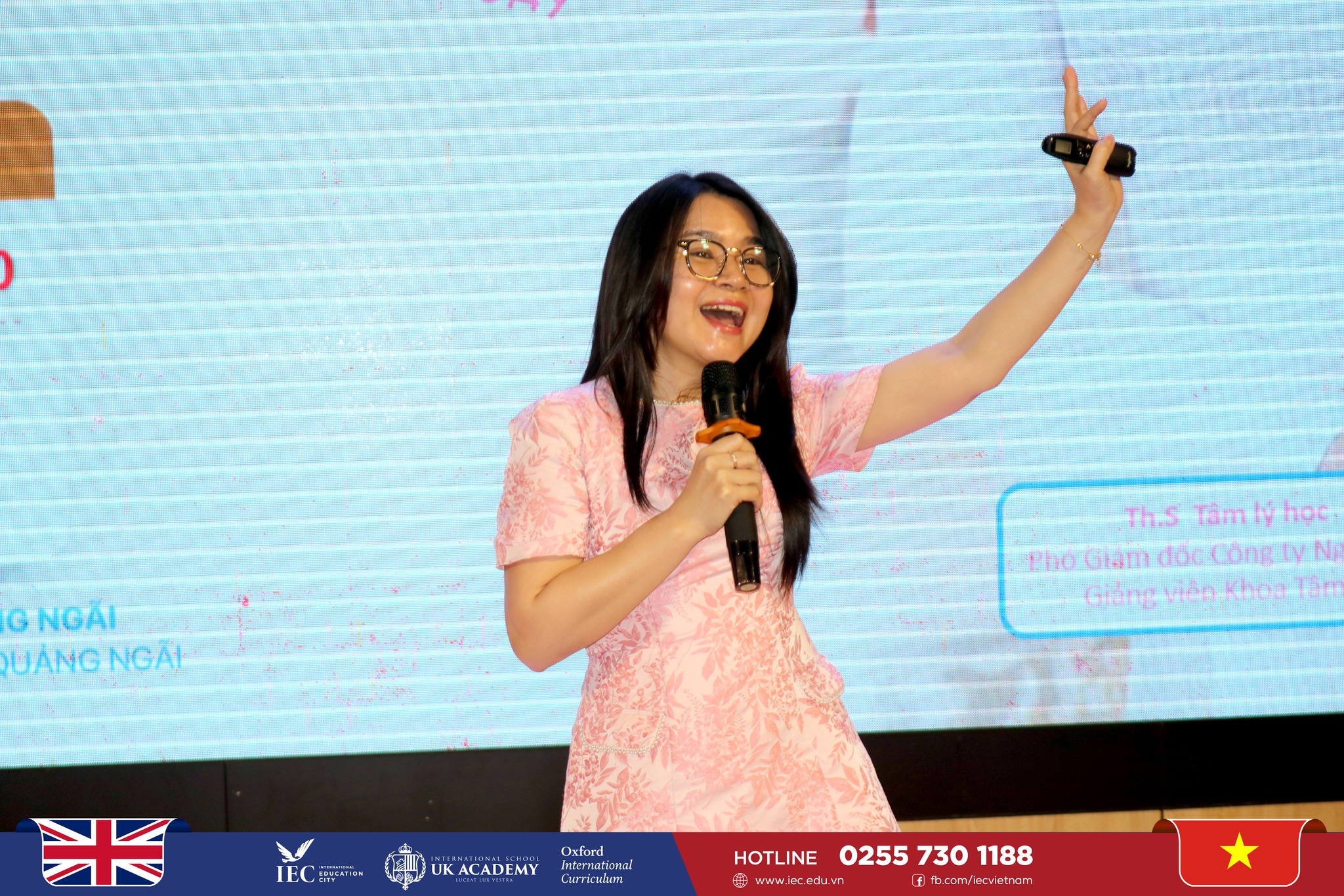 ? Chiều ngày 15/4, học sinh Tiểu học trường Quốc tế IEC Quảng Ngãi đã có một giờ học rất đặc biệt – không có sách vở, không có bài kiểm tra, nhưng lại đầy ắp những cảm xúc và bài học sâu sắc. Chuyên đề “Hành động nhỏ – Trái tim lớn” do Thạc sĩ Tâm lý học Nguyễn Thị Hồng Nhung, giảng viên Trường Đại học Sư phạm – Đại học Đà Nẵng, trực tiếp chia sẻ đã mở ra một hành trình khám phá về lòng biết ơn theo cách mà các em có thể cảm nhận và ghi nhớ bằng chính trái tim mình.